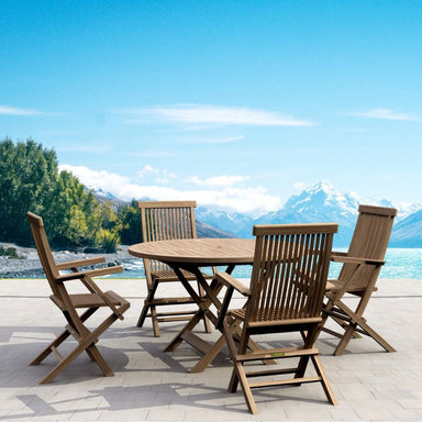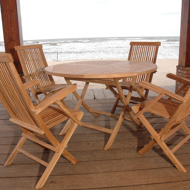 An outdoor dining set perfect for the home and outdoors, it features the Bahama 47" Round Folding Table with four Classic Folding Armchairs for eas...