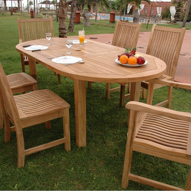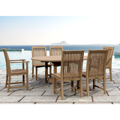 The beautiful all natural teak design of our Bahama Dining Set features four Chicago Chairs and two Chicago Armchairs with contoured seats and high...