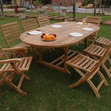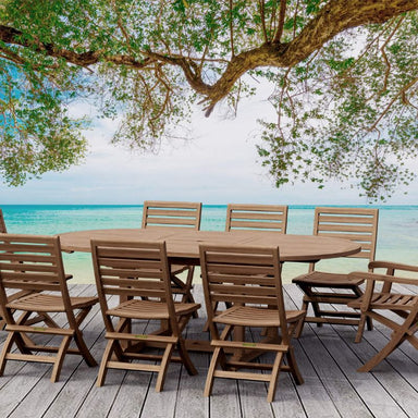 Enjoy the experience of outdoor dining with family and friends while sitting on the Andrew Folding Chair and the Bahama 87" Oval Extension Table. T...